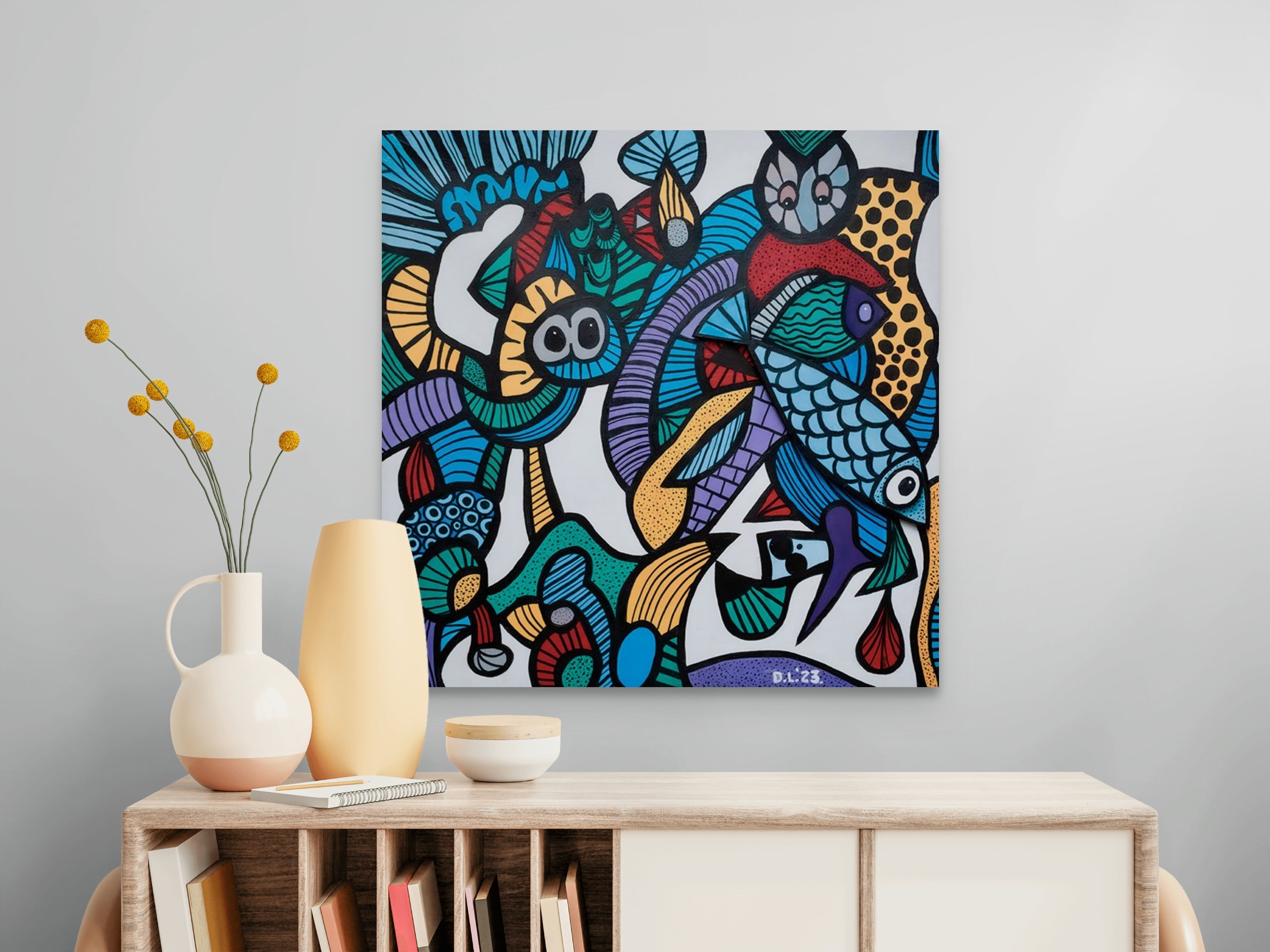 Atmosphere: Consider the emotional impact of the artwork. Warm colors can make the space feel inviting and cozy, while cool tones might create a calm and serene atmosphere.